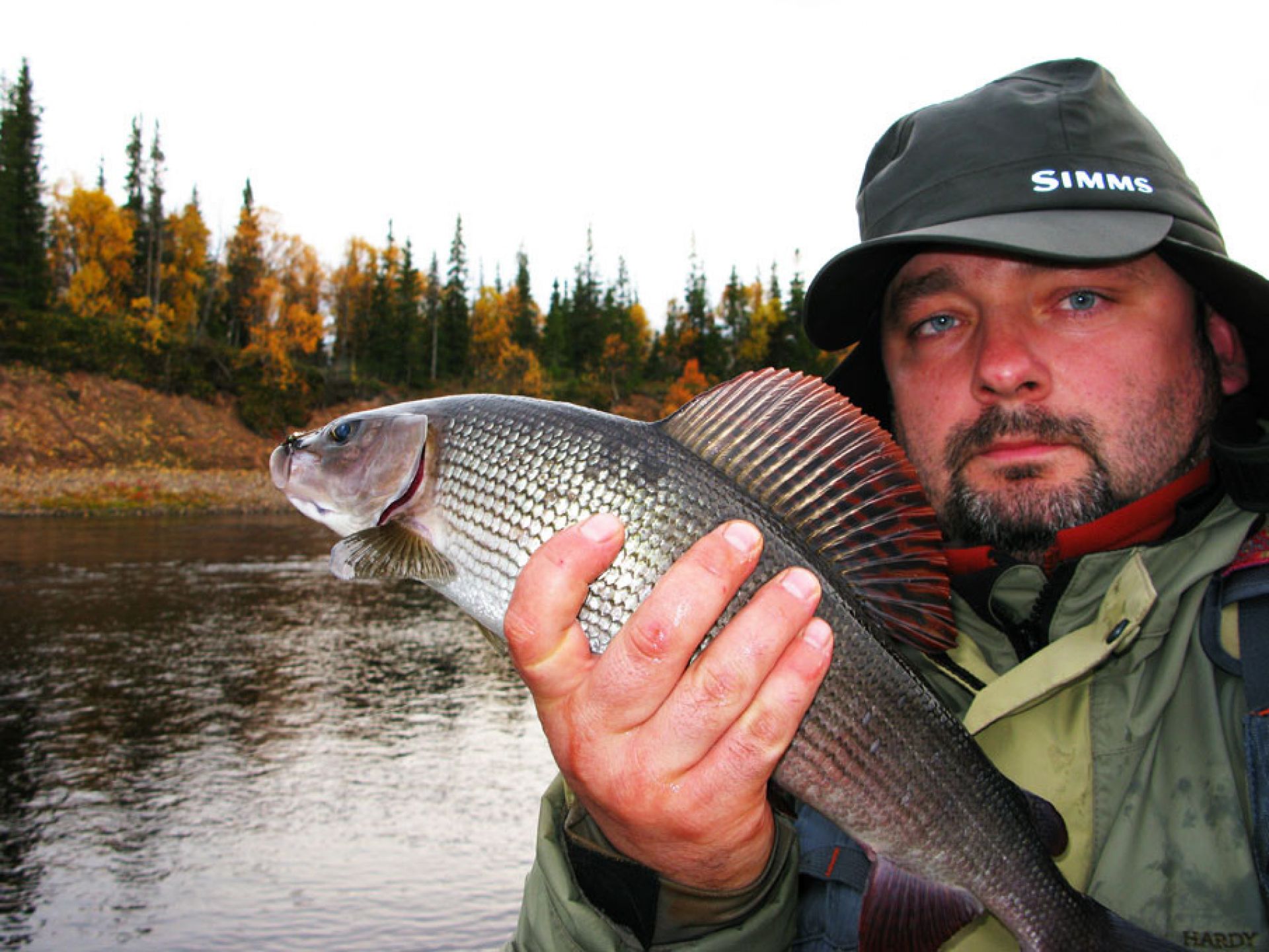 Ja będę przez dwa ostatnie dni polował na lipienie. Niestety temperatury są tak niskie, że nie ma szans na rójkę a co za tym idzie suchą muchę. Nie szkodzi, na nimfę też fajnie. Wędka 5, przypon 0,15 a na nim klasyczna brązka. Kilka rzutów, ruch sznura na wodzie, zacinam i sreberko wyskakuje do góry. Stoję osłupiały, czyżby mały łosoś, jednak odejście ryby, które w ręku czuję jak by stukanie telegrafem upewnia mnie, że mam na kiju okazałego lipienia. Ryba jest niezwykle silna, ponawia skoki i sprawia, że na lekkim zestawie hol jest równie emocjonujący jak walka z łososiem. Dopiero po 9 minutach ląduje kardynała na brzegu. Nigdy w życiu nie trwało to aż tak długo. Miarka, komisja sędziowska przystępuje do pracy, werdykt – 47 cm. To mój rekord. Może łowcy szczupaków (za których łowcę też się uważam) nie zrozumieją mojego szczęścia, jednak gorąco namawiam, duży lipień na delikatnej muchówce to kwintesencja wędkarstwa. Tego dnia, łowię ich jeszcze wiele, żaden nie jest mniejszy niż 40 cm, większość mieści się pomiędzy 45 a 47 cm (kto kiedyś łowił lipienie - rozumie co tam się wydarzyło).